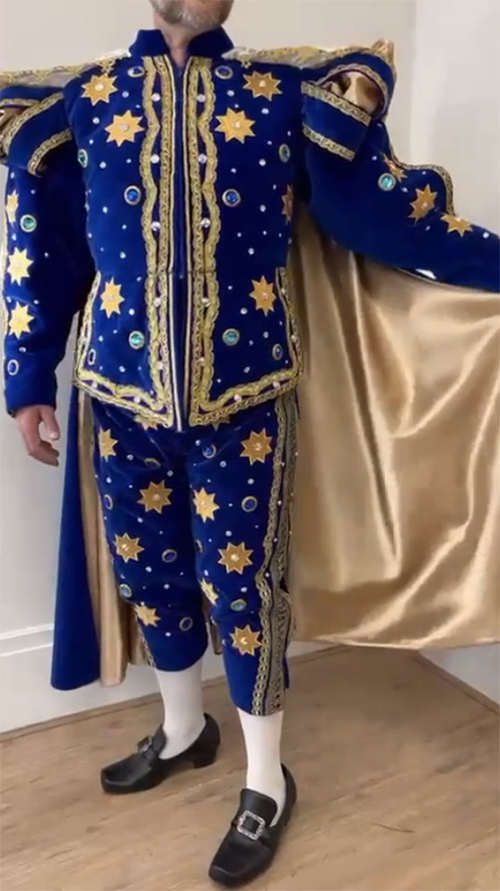Le Chat Botté : Pourpoint et culotte en velours de coton, brodé, strassé, galonné dans l’esprit de La Belle et la Bête de Cocteau, pour Le Chat Botté, Chantal Goya, 2025