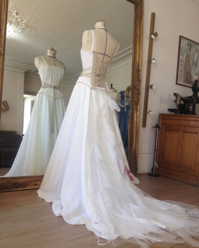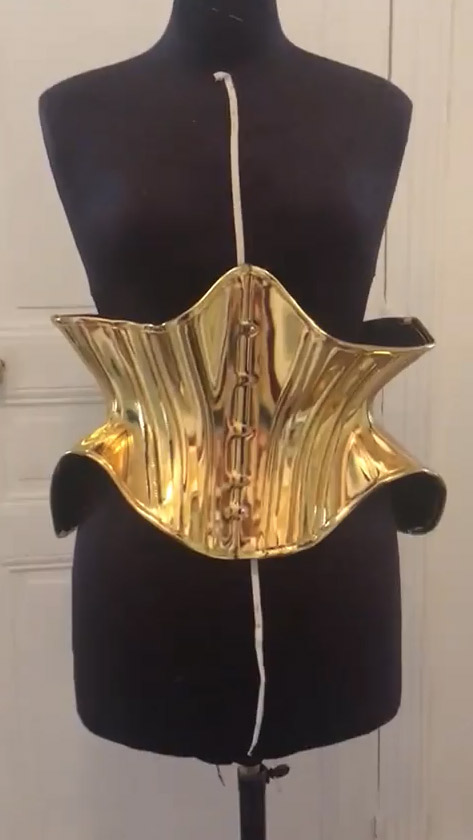 Réalisation par Bas et Hauts Paris du recouvrement des baleines du corset cage
